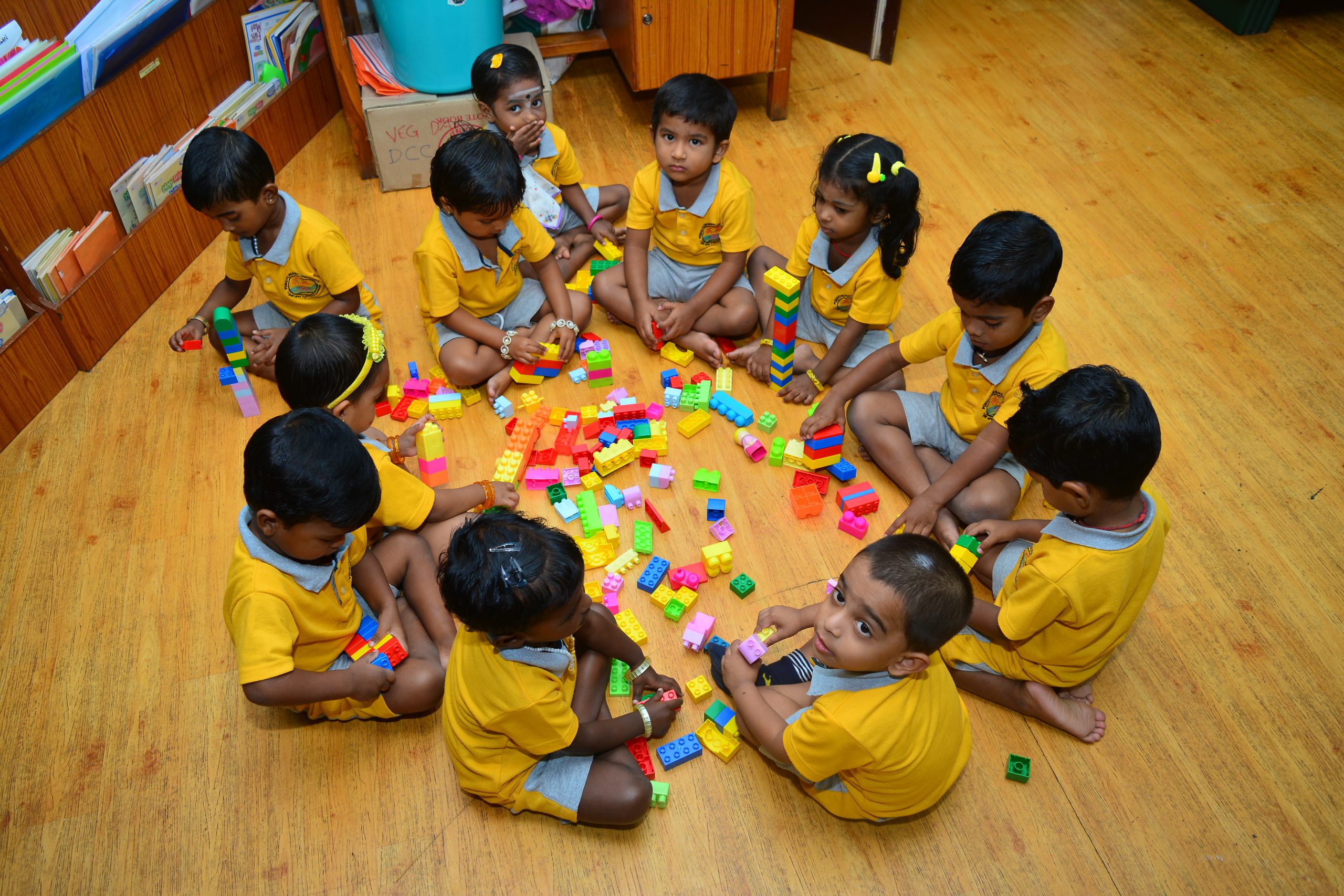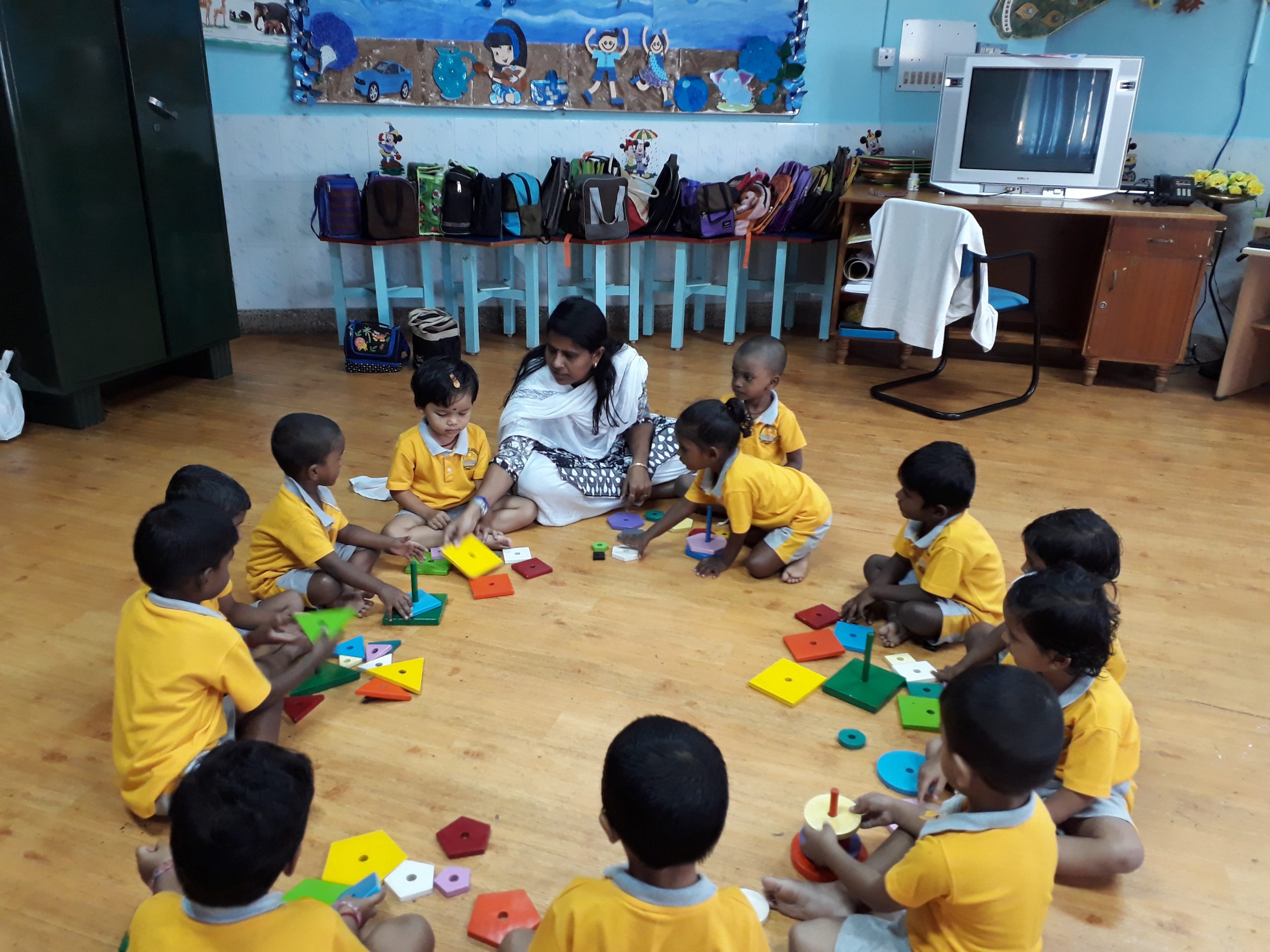 Children are allowed to play, learn good habits, carry out disciplined good activity, sing nursery rhymes, play with toys, indoor bicycles, watch cartoon films on TV, learn basic alphabets, etc. Facilities to feed the children with home made food and filtered water are available. Sleeping facility for all children such as  mini Cots, cradles and separate sick beds are available. All rooms are  with hygienic atmosphere. The surroundings are covered with concrete to avoid entry of snakes, scorpion, ants, insects etc.
