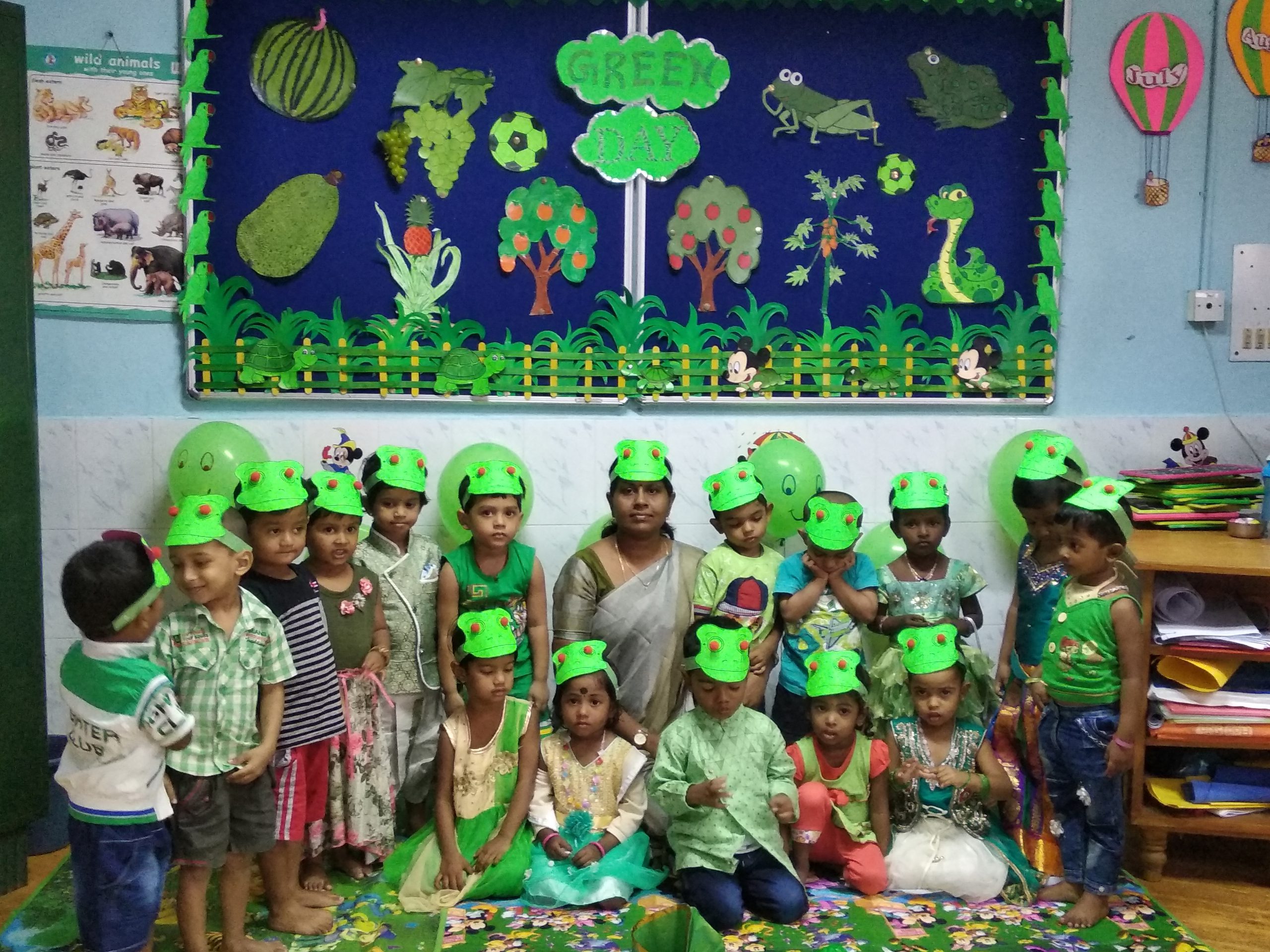 UKG :    Boys – Yellow checked shirt, Green shorts